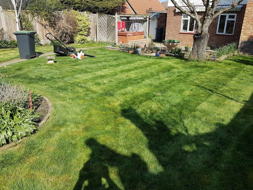 April 2018 - It has been a day for first cuts of the year and new customers. The grass was shin high